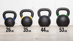 Customers can select from 7 different weight increments, all of which have the same bell size to maintain a continuity in feel as you move up to higher weights. Each competition kettlebell also has its own color-coded finish with the KG weight increment printed on the center of the bell. Free shipping is available for customers who elect to purchase the full 7-bell set.