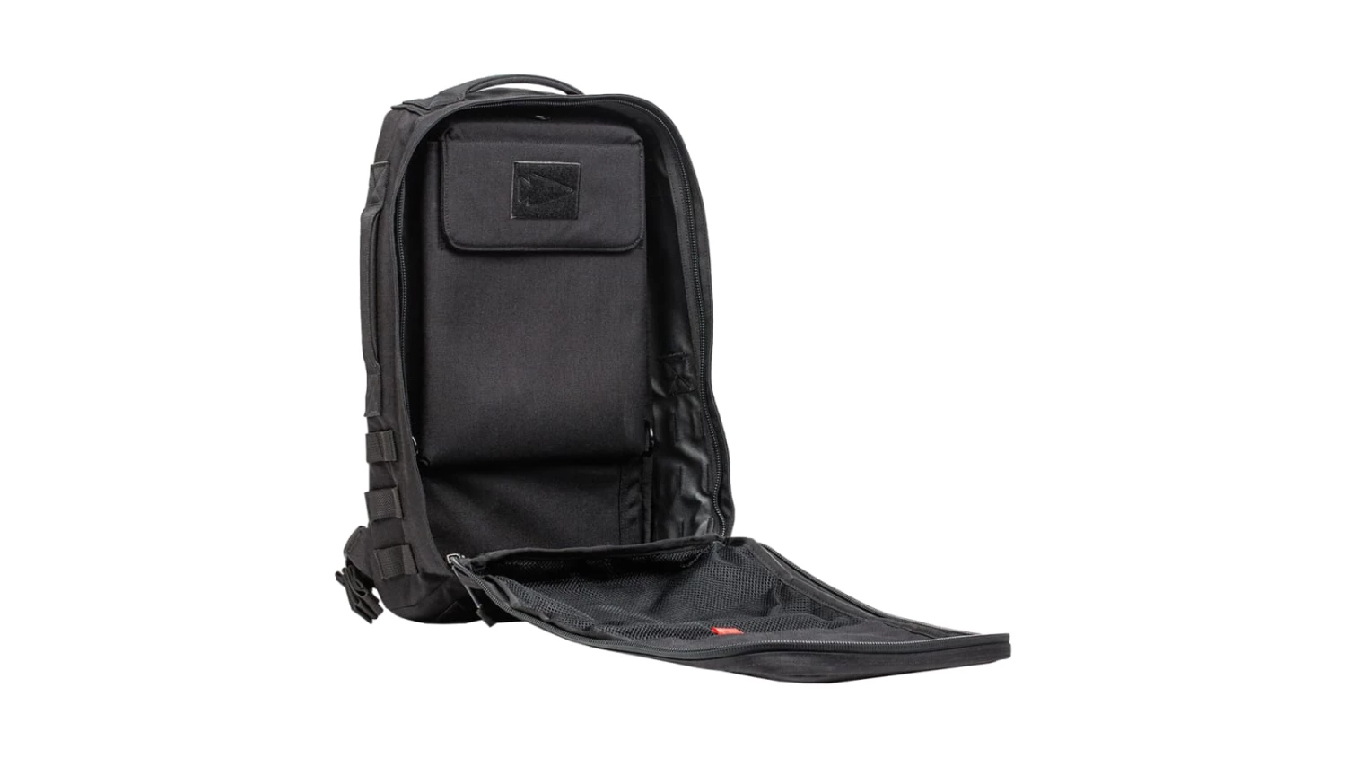 The primary material with all colorways of the Rucker 4.0 is 500D or 1000D CORDURA, with (4) padded handles (top, bottom, and both sides) and (2) interior mesh hook-and-loop pockets built in. Three rows of external MOLLE webbing are also included standard, along with a 3mm thick frame sheet, a hi-viz reflective safety stripe, and an adjustable/removable Sternum Training Strap to better disperse heavy loads. There are 2×3” hook-and-loop sections on the front panel and the Ruck Plate pocket for custom patch additions.