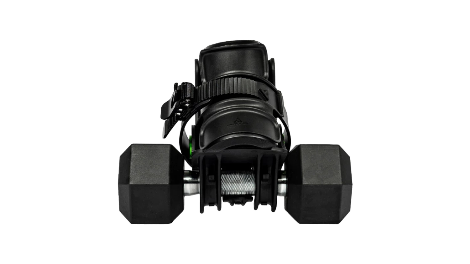 Sold as singles or as a pair, MonkeyFeet work interchangeably on the left and right foot, and they are equipped to fit most shoe sizes. Each 1.2 LB attachment is constructed from high-end materials and incorporates ratchet technology borrowed from the action sports world, keeping the dumbbell secured below the heel for optimal comfort and freedom of motion. Just fold, clamp, and ratchet to secure the DB, then get your work in. Leg Day can now move from the gym to the park, home, work . . . MonkeyFeetโs portability puts no limits on where you train.