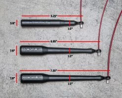 Elite 2.6 ounces – Aircraft grade cable with PVC coating. Our mid range weighted cable weighing 2.6 ounces for a 9′ length (excluding handles). Our most all around utility cable offering a nice blend of light weight with increased feedback and response while itโs rigidity maintains a nice โhorse shoeโ shape while in motion. Recommended for jumpers who can already turn 50+ double unders.