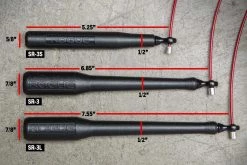 Hyper 1.3 ounces – Aircraft grade cable with PVC coating. Our lightest offering weighing only 1.3 ounces for a 9′ length (excluding handles). Most comparable to traditional speed cables. The PVC coating does not retain memory and therefore uncoils nicely. This cable produces the fastest cycle rate therefor the athlete must be extremely proficient at double unders. Recommended for advanced jumpers who can already turn 75+ double unders.