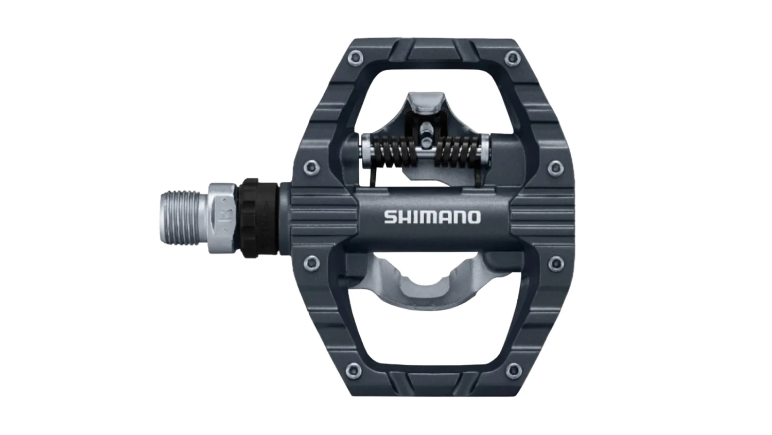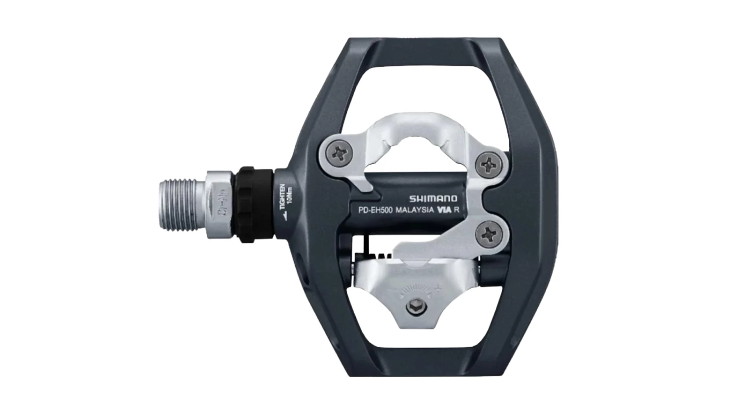 Shimanoβs multi-purpose PD-EH500 is a dual-sided replacement bicycle pedal with an SPD step-in design on one side and a traditional flat platform on the otherβinstantly adapting your bike to any footwear, and from casual riding to competitive training. The quality construction includes a chromoly steel axle, aluminum body, (8) replaceable pins per pedal, and improved firm-traction on the flat side for greater control and stability in any conditions.