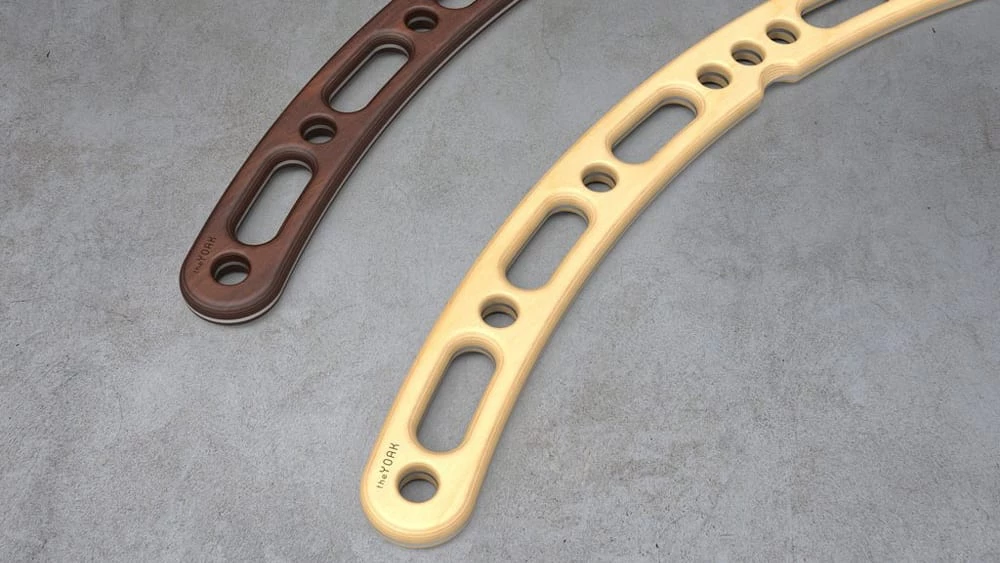 Designed around the concept of strength symmetry and pendular movement, the Composite Yoakโข gives athletes a dynamic new tool equally equipped for suspension training, bar/squat, and parallette mode. Each Yoak measures just under 4′ in length and is manufactured in Ontario, Canadaโusing aircraft-grade aluminum + your choice of a natural birch or burnt walnut. The result is a highly durable but lightweight and maneuverable system for pushing, pulling, squatting, yoke walking, and more.